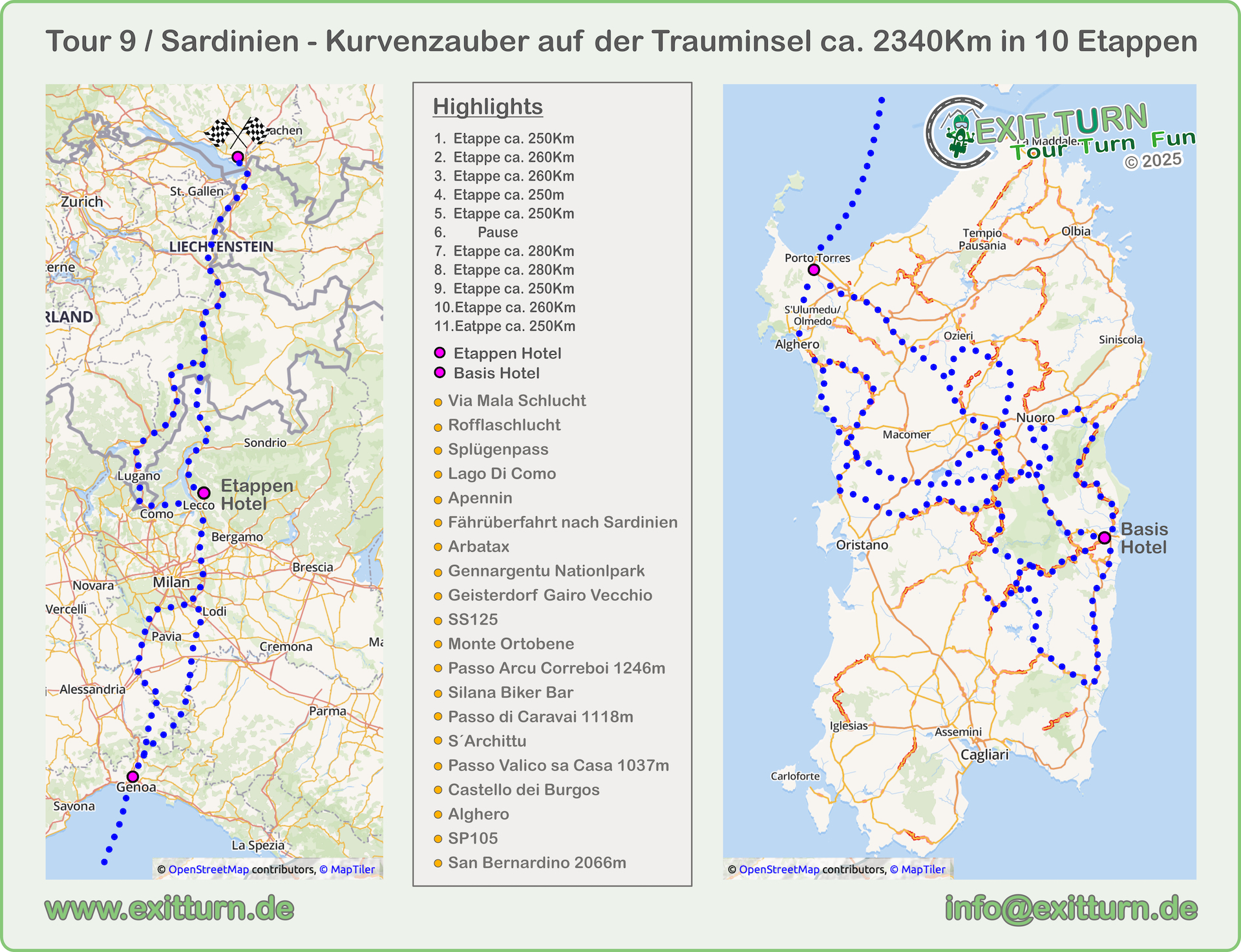 - Gesamtstrecke ca. 2340Km auf 10 Etappen